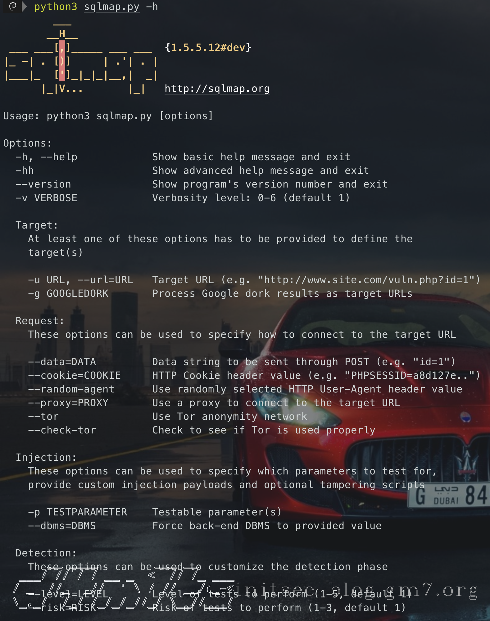 sqlmap -u URL --batch                                   # 不要请求用户输入,使用默认行为