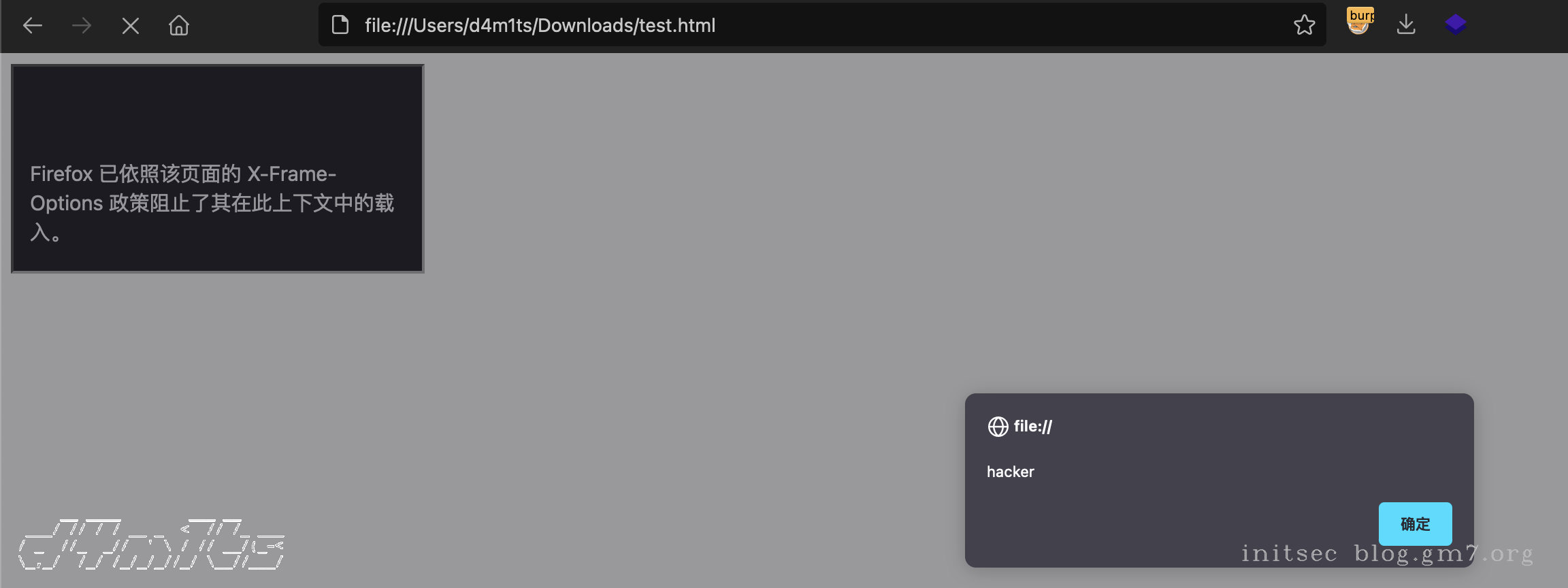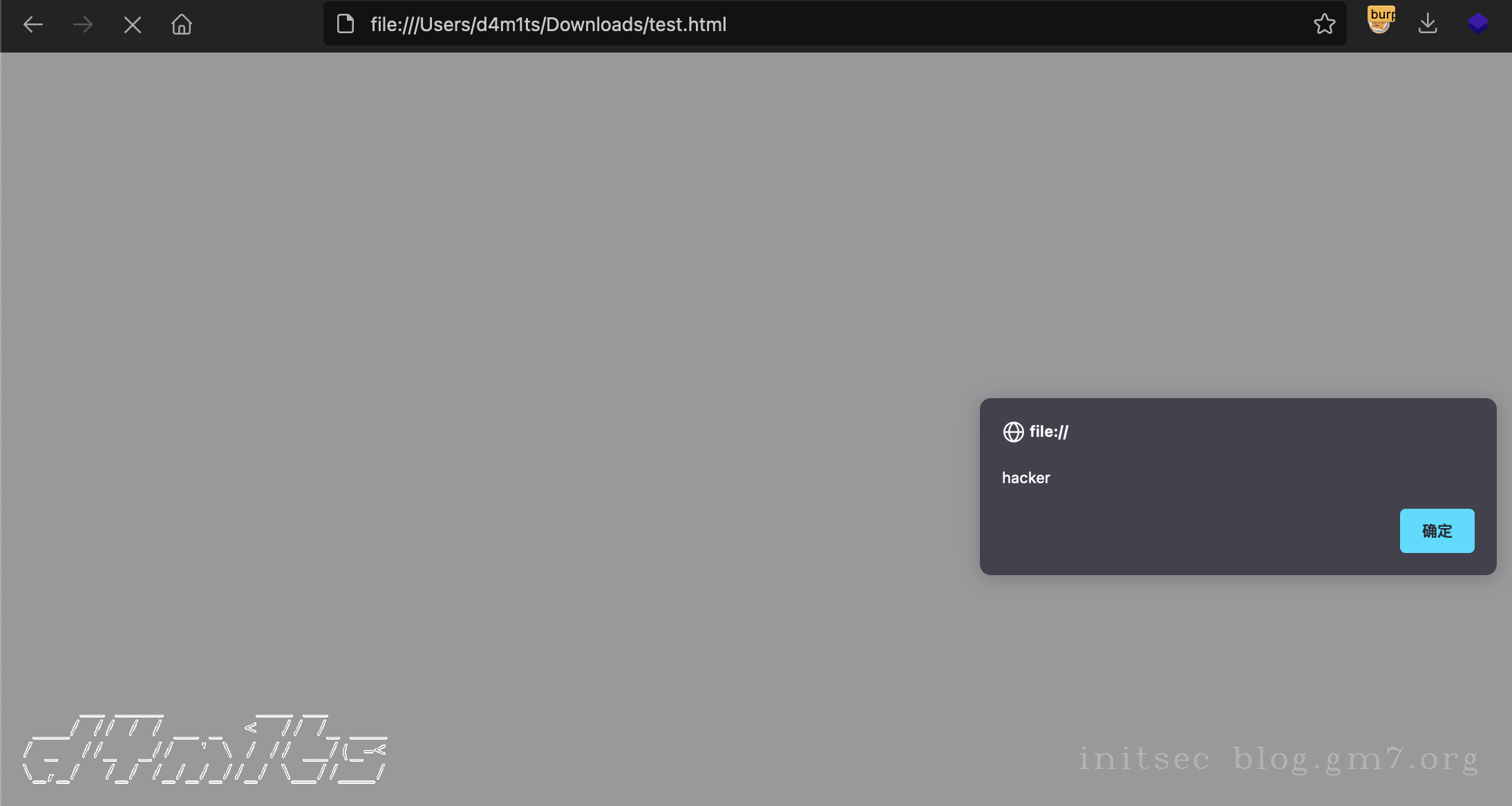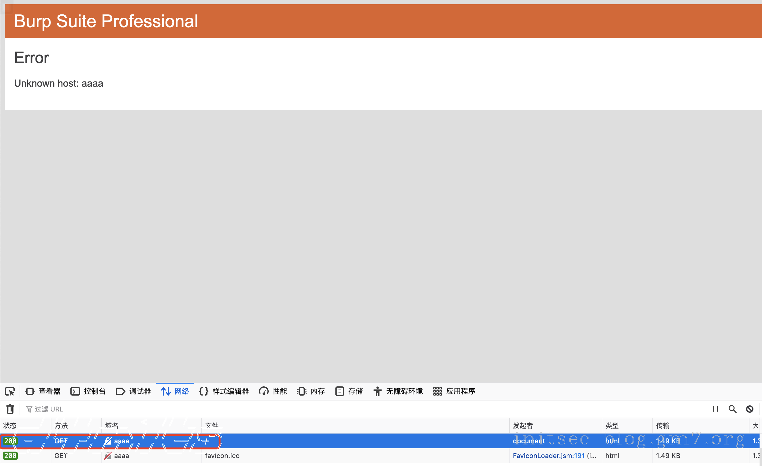 采用img标签不存在跨域的问题,结合onload事件,如果能加载burp的图标http://burp/favicon.ico,就说明是攻击者,举例代码如下:
