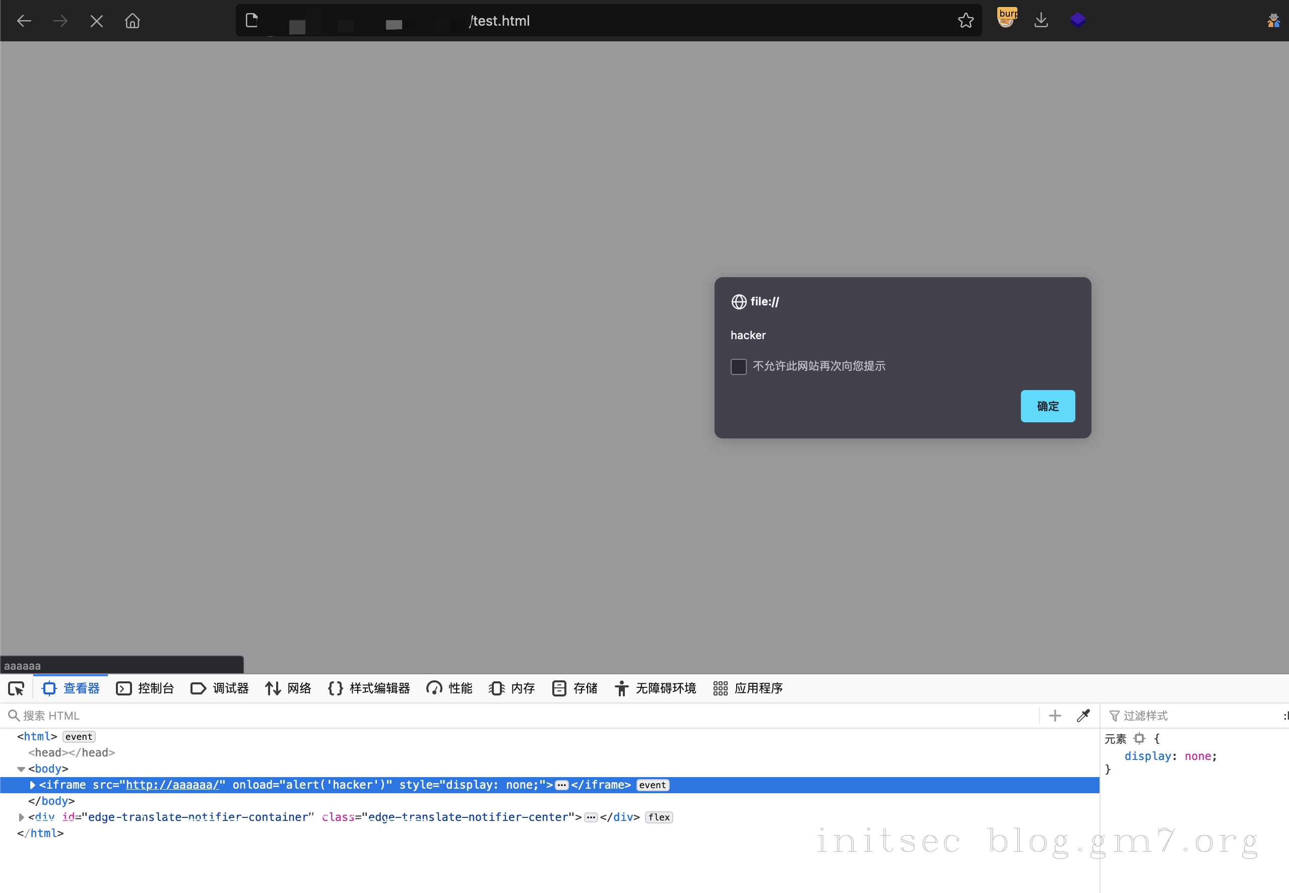 <iframe src="http://aaaaa/" onload="alert('hacker')"></iframe>
