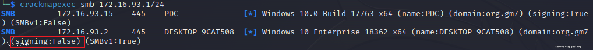 1. 目标主机没有开启smb签名,一般情况下,Windows Server系列会默认开启,因此域控默认也会开启,而Windows单机系统[win7/8/8.1/10]默认都不会开。
