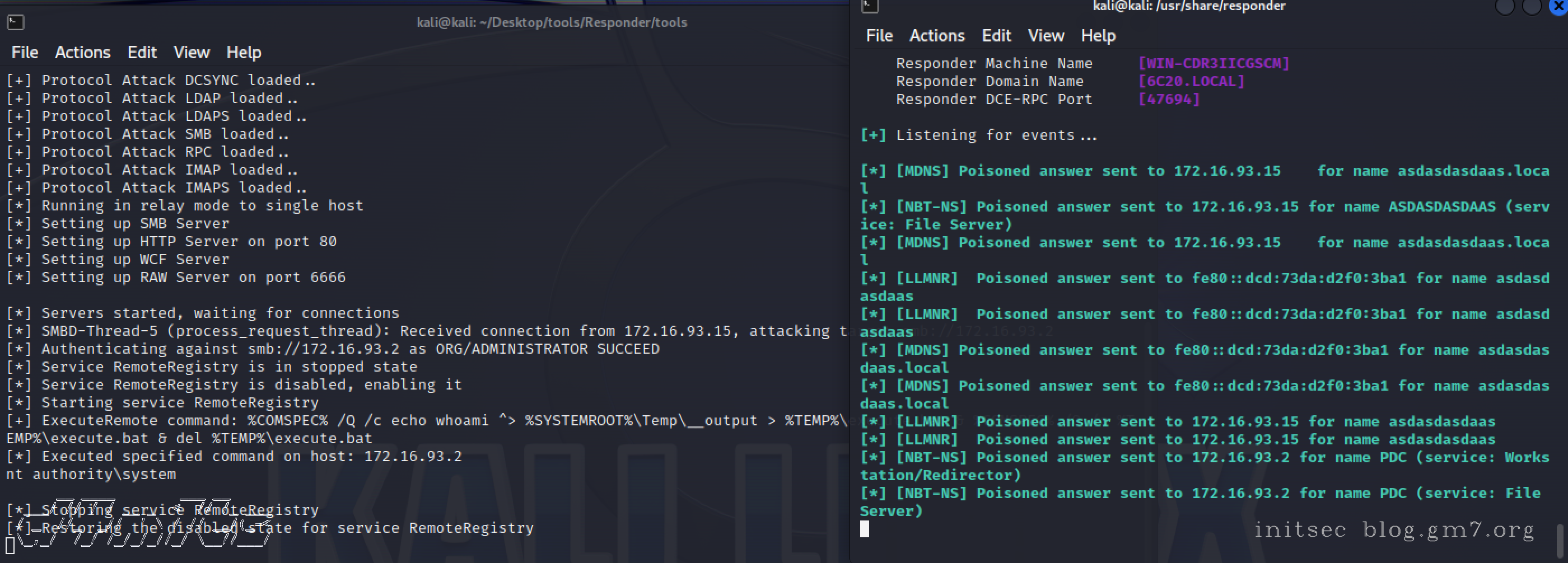 中继域管的Net-NTLM Hash,再其他的域机器上执行whoami命令。