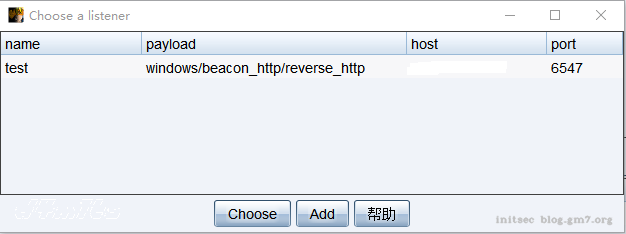 打开MSF或Armitage做好监听配置之后选择或添加一个外部Payload然后点击Choose之后就会收到会话连接