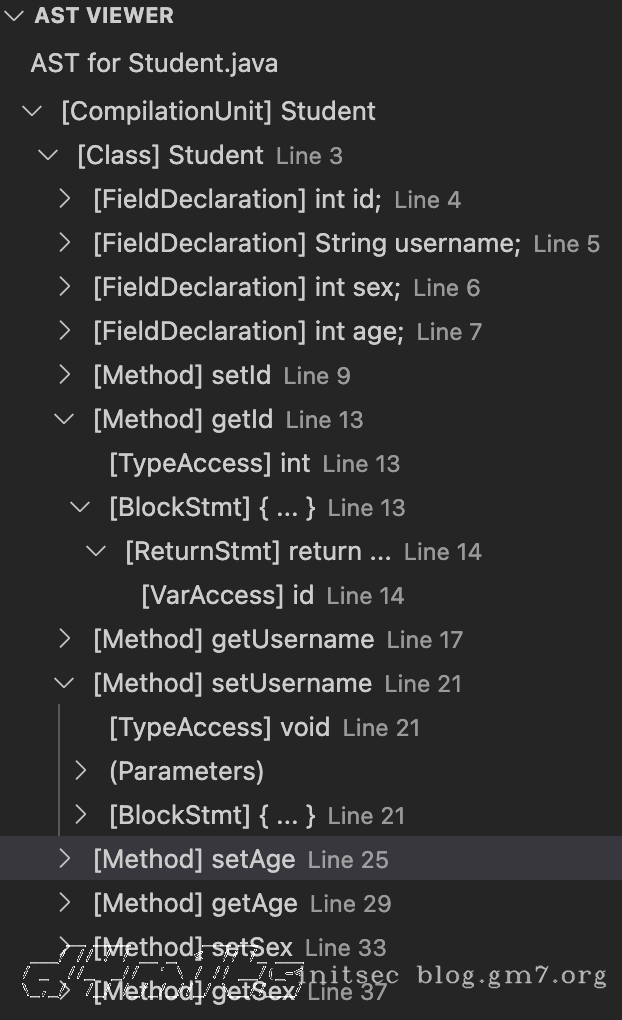 刚才说了解析引擎给代码解析为了AST数据库,AST Code如下: