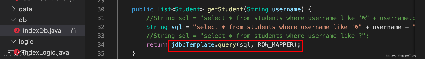 exists( | method.hasName("getStudent") | method.getDeclaringType().toString()="IndexDb" )