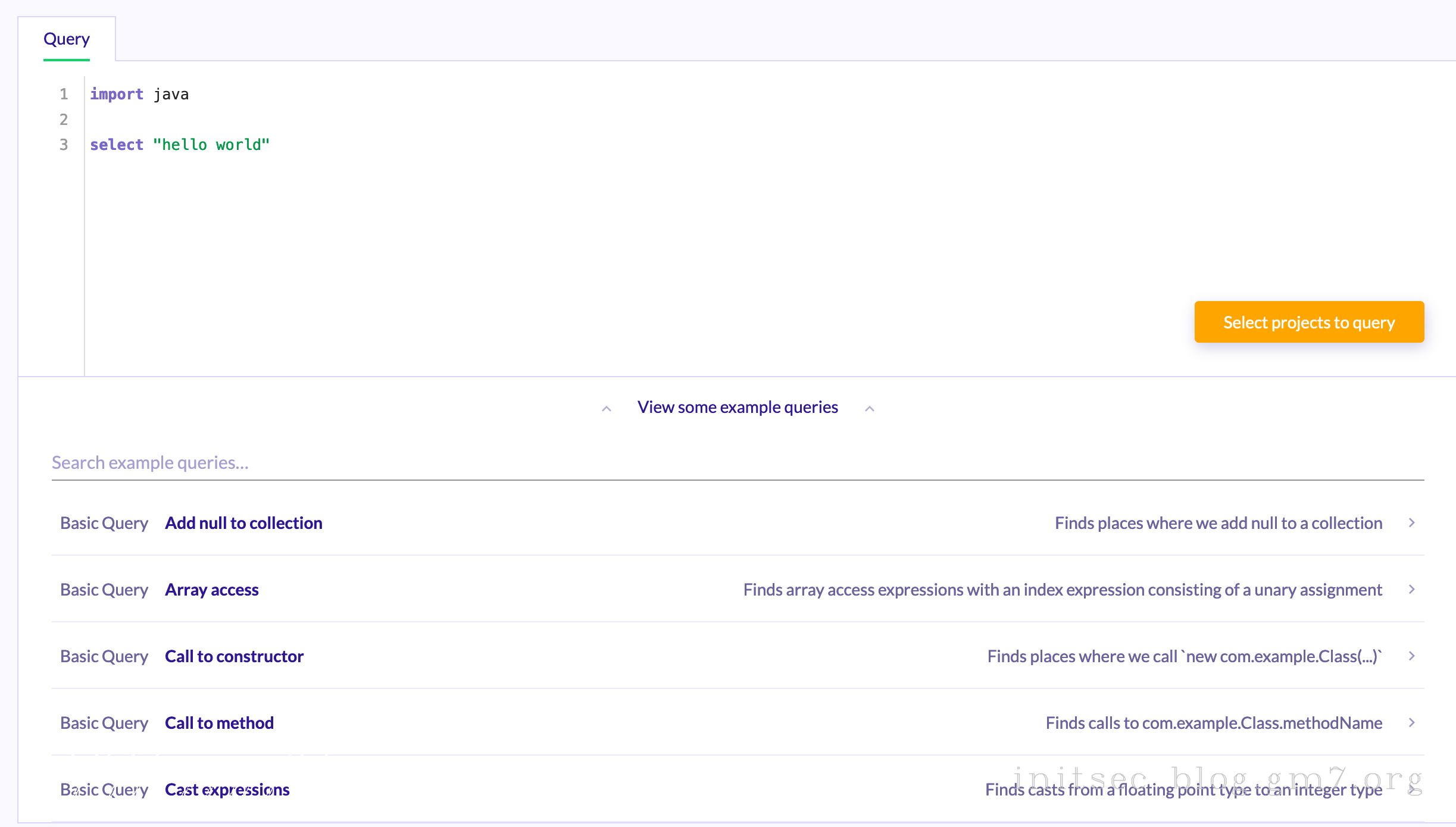 - 第一行表示我们要引入CodeQL的类库,因为我们分析的项目是java的,所以在ql语句里,必不可少