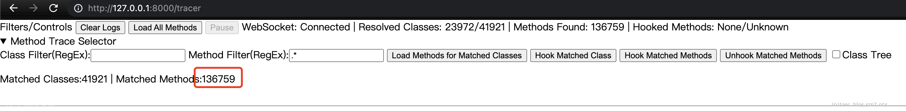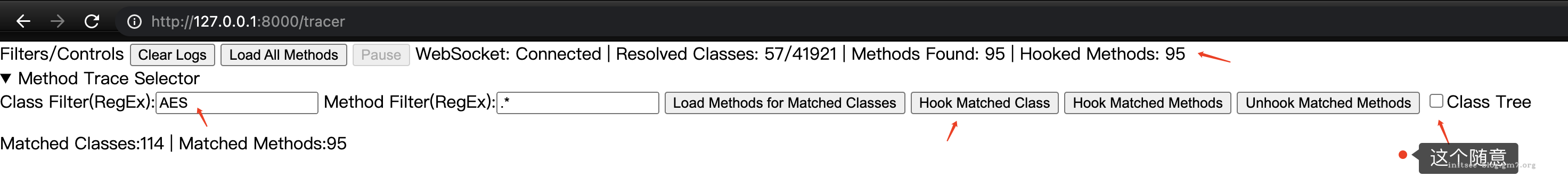 打开本地127.0.0.1:8000,即可成功hook的web界面了