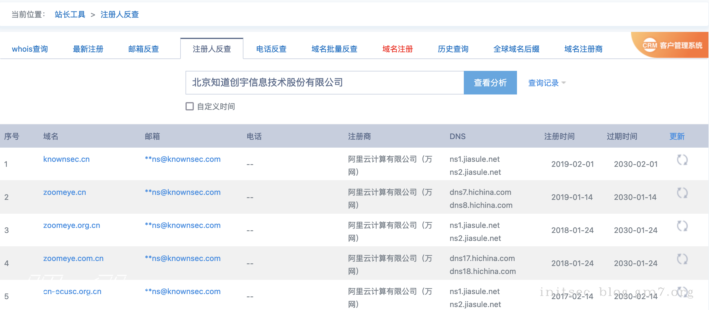 重点关注注册商、注册人、邮件、DNS解析服务器、注册人联系电话。