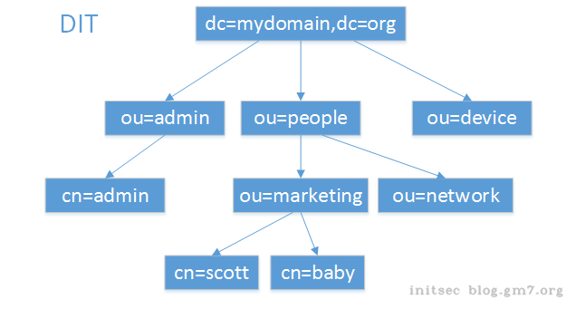 | dn(Distinguished Name) | 一条记录的位置 ,如上图,我们要想描述baby这个节点,描述如下cn=baby,ou=marketing,ou=pepple,dc=mydomain,dc=org |