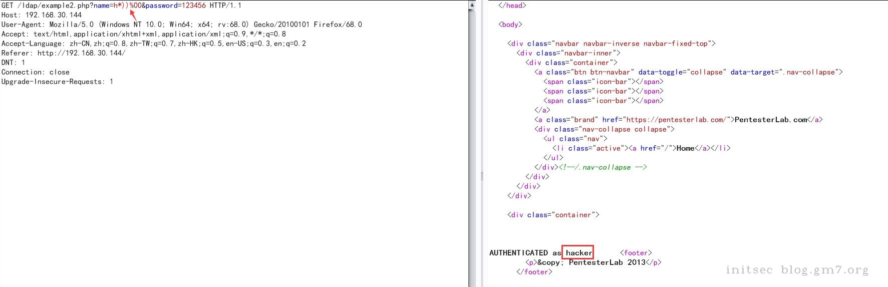 - 在OpenLDAP中,第二个过滤器会被忽略,只有第一个会被执行,那么类似上面的这种注入就可以成功的。