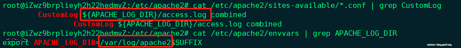 # 获取日志路径 cat /etc/apache2/sites-available/*.conf | grep CustomLog cat /etc/apache2/envvars | grep APACHE_LOG_DIR
